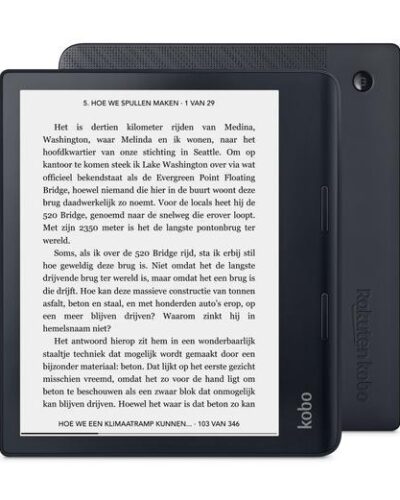 De Kobo Sage heeft een prachtig scherm met de ComfortLight PRO, hiermee kan je de kleurtemperatuur van de verlichting instellen zodat je ook ‘s avonds of ‘s nachts comfortabel kunt lezen. Het scherm is ook voorzien van een Dark Mode. Met deze Dark Mode kan je de pagina-achtergrond zwart maken en de tekst wit.